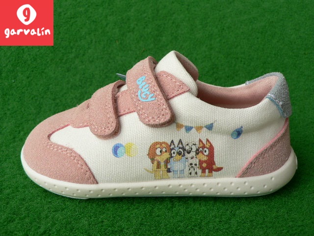 bílo-růžová s postavičkami Bluey, Bingo, Coco a Muffin