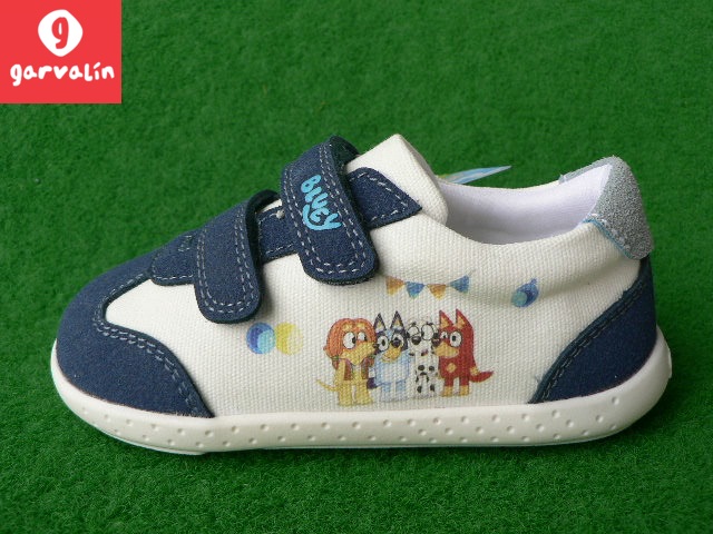 bílo-modrá s postavičkami Bluey, Bingo, Coco a Muffin